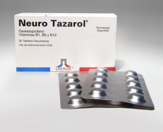Neuro Tazarol® is a medication that contains dexketoprofen trometamol as the active ingredient. Neuro Tazarol® is used as an analgesic and anti-inflammatory, due to its ability to inhibit the activity of cyclooxygenase, thus preventing the synthesis of prostaglandins, responsible for the body’s inflammatory response. Additionally, it contains B complex vitamins (B1, B6 and B12) that have the properties of enhancing the analgesic effect of dexketoprofen, participate in cellular metabolism for energy production and act in the maintenance and proper functioning of the central nervous system.